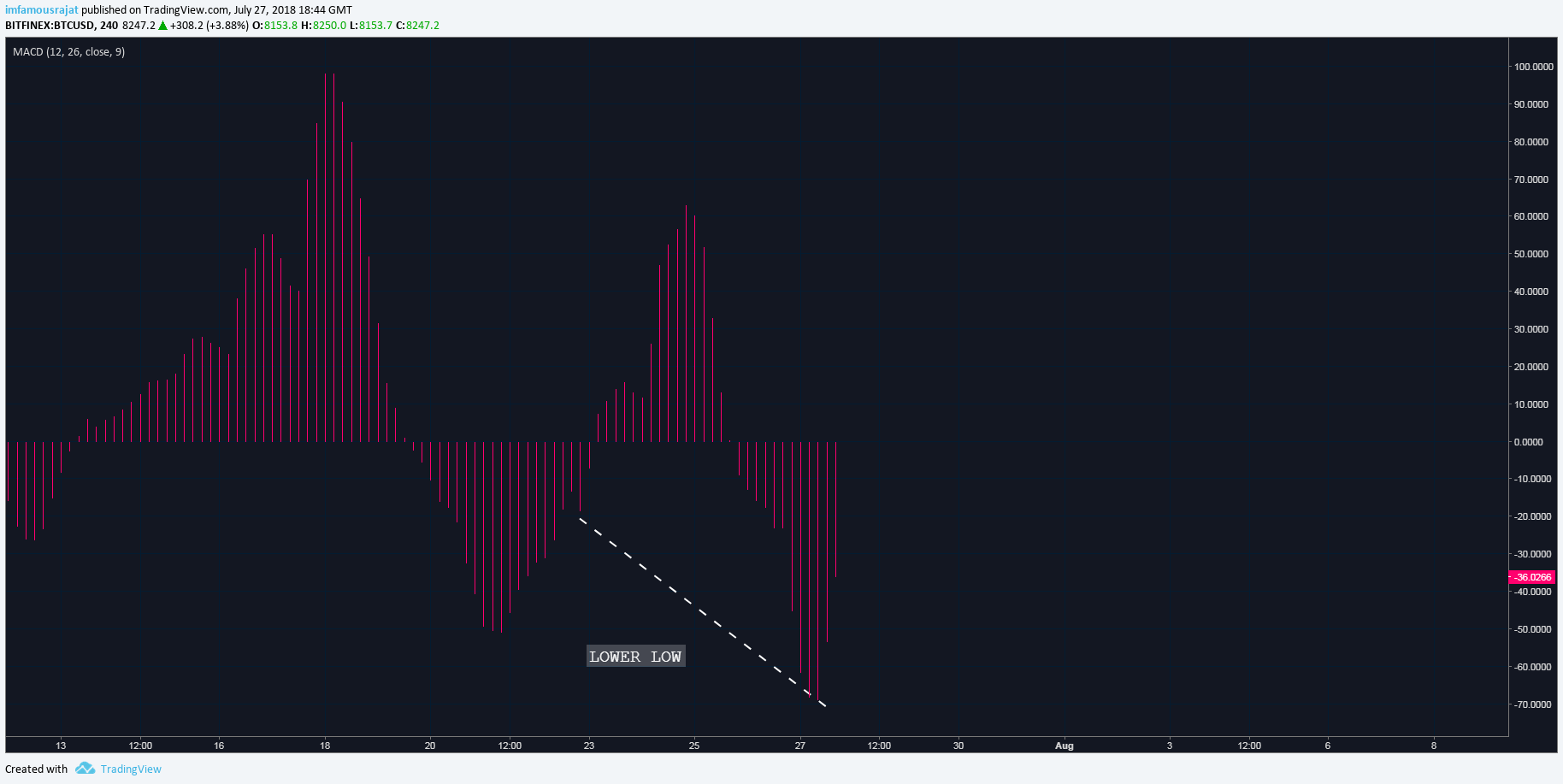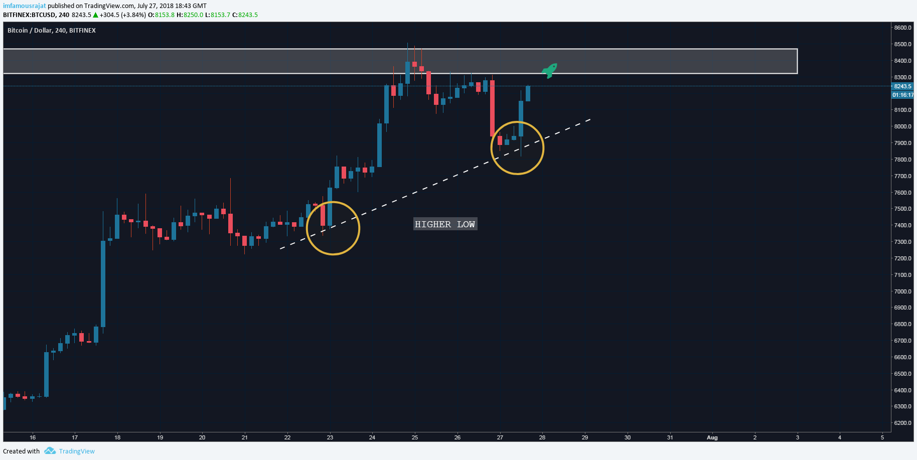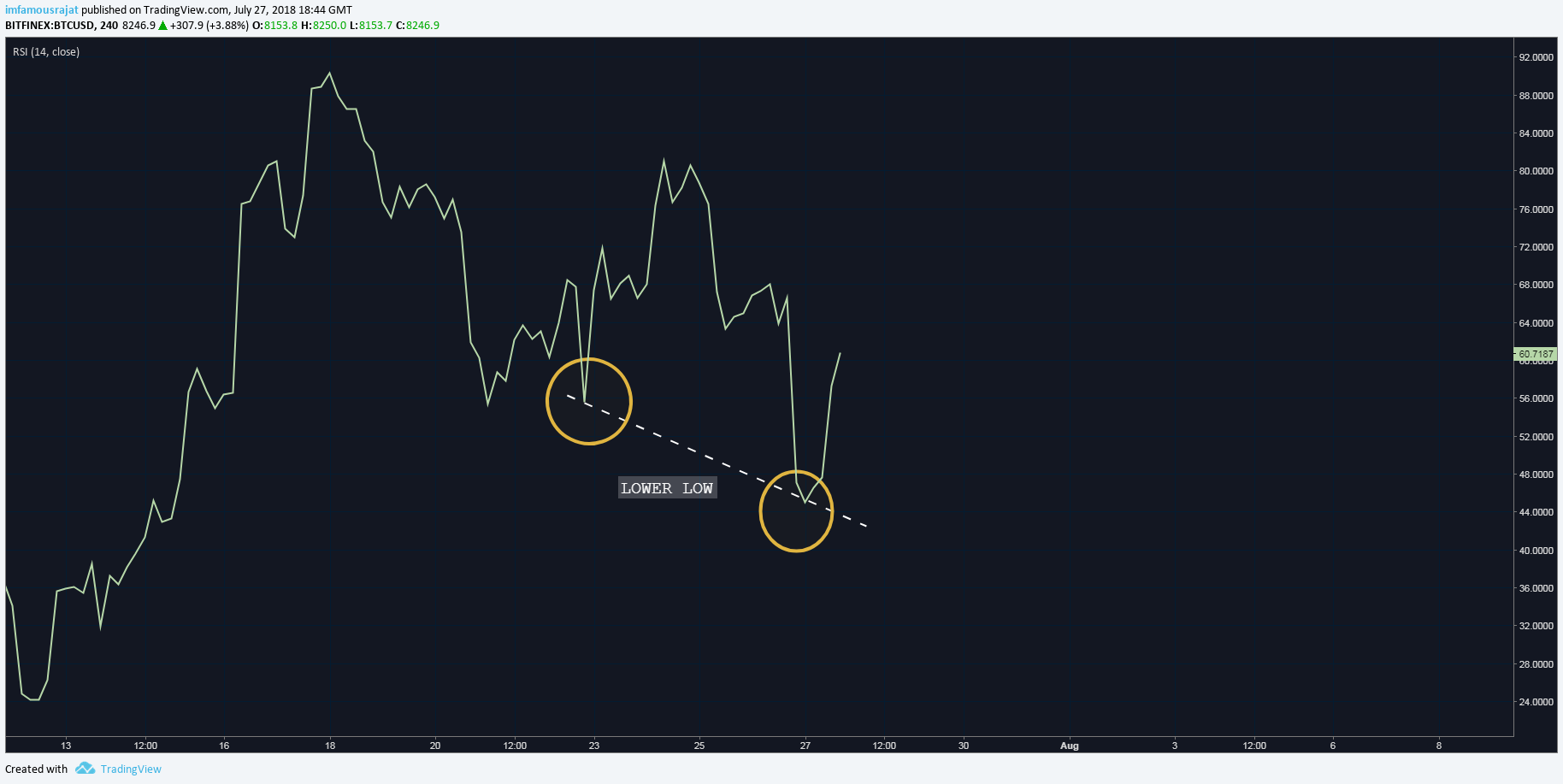 Hidden Bullish Divergence has been spotted on BTC USD chart.