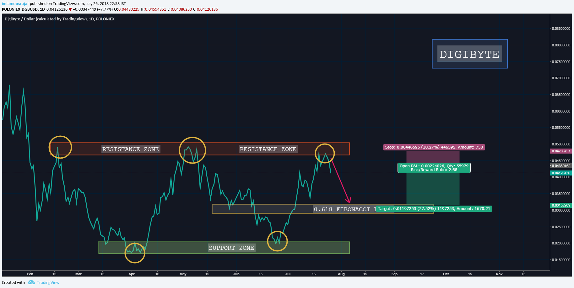 DIGIBYTE - TRIPLE TOP REVERSAL - SHOULD FALL SOON.!