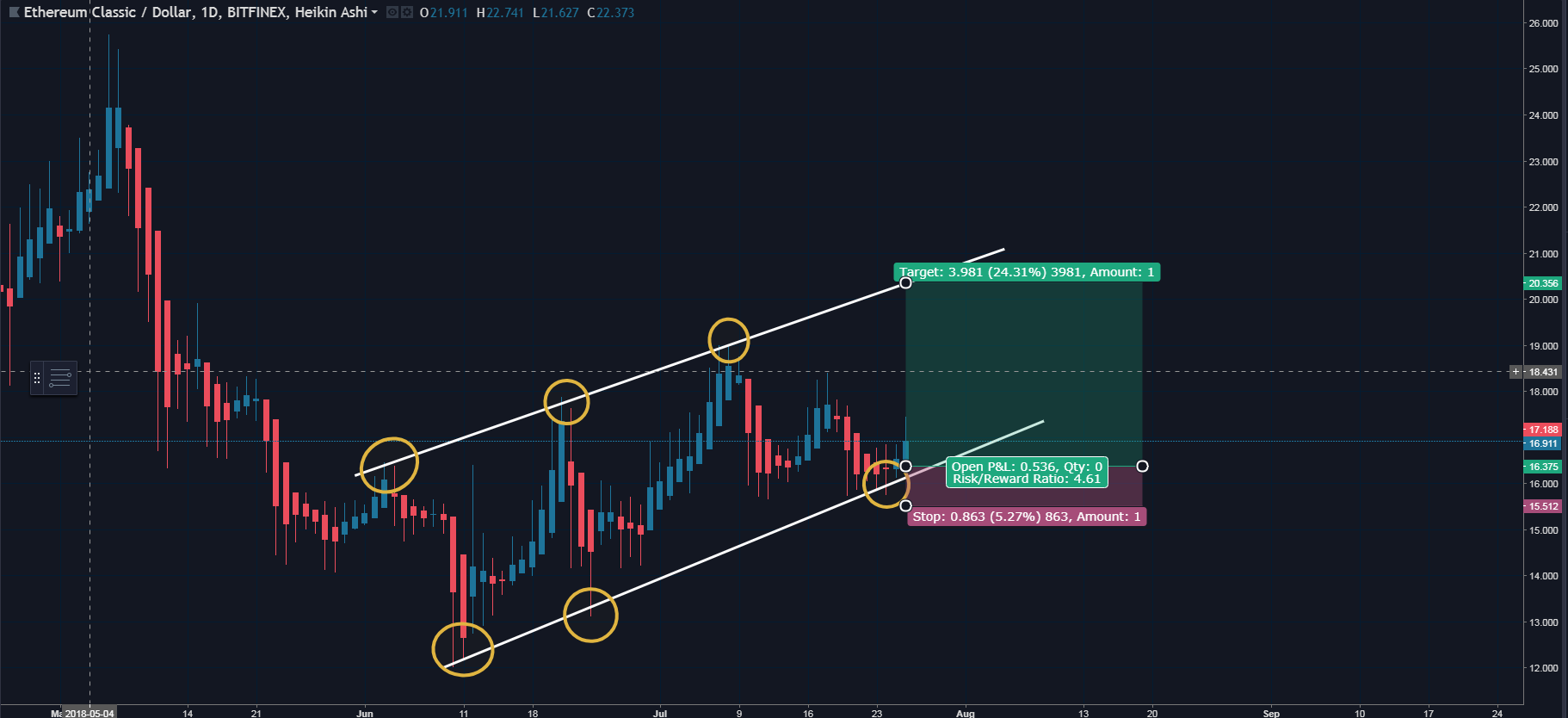 Ethereum Classic has been moving in Ascending channel . Looking sweet to take in some long positions. I was about to post this last night, but got occupied in some important work. Since, then the price has appreciated by 6%.