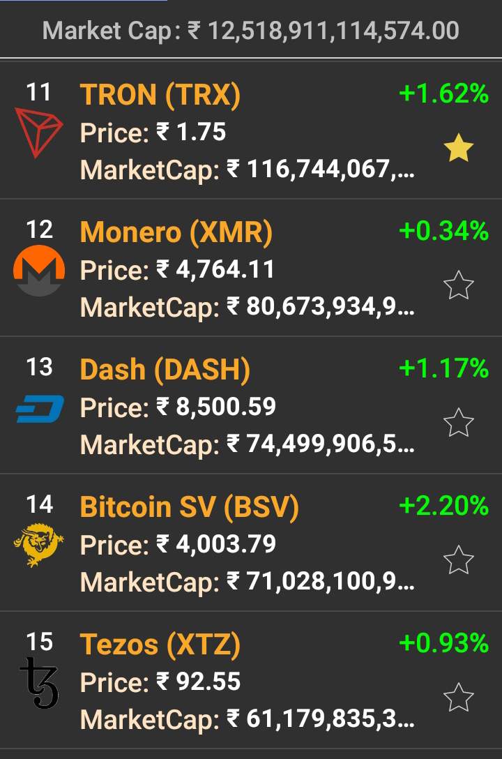 Coinmarket app के अनुसार आज मुख्य क्रिप्टौ कोइन्स के भाव इस प्रकार रहे।