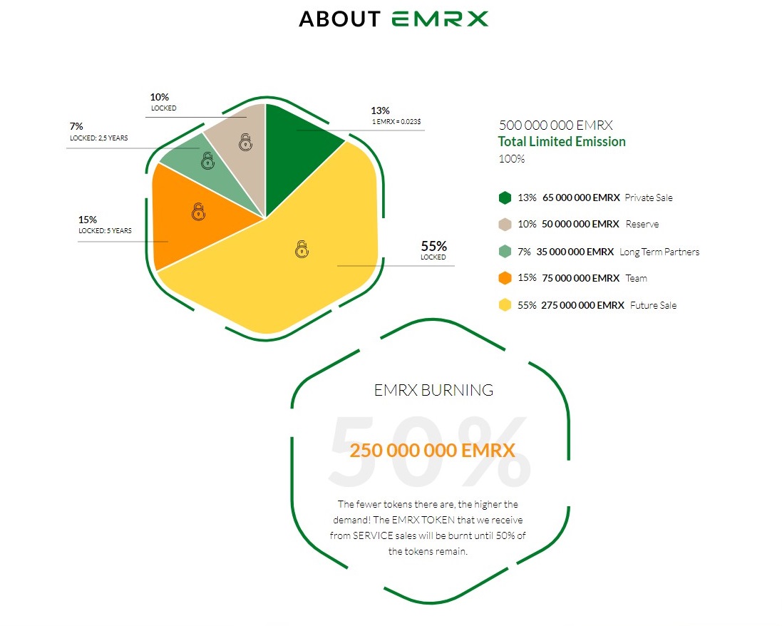 - 55% токенов Emirex зарезервировано для будущих продаж.