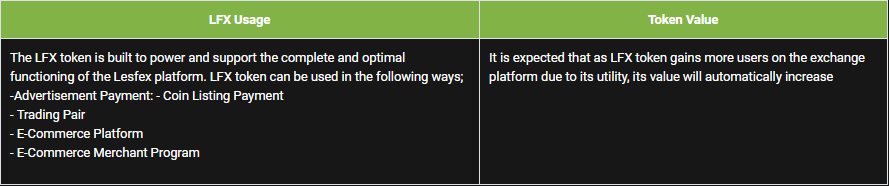 -To be used as the utility token within the Lesfex ecosystem