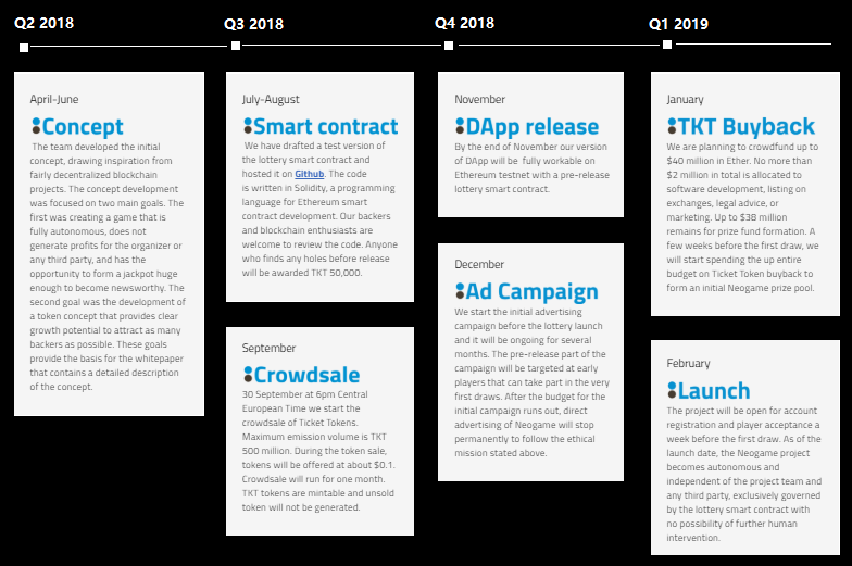 Neogame will function using Ticket Tokens (TKT) as both lottery tickets and prize fund currency. The supply is limited to 500 million tokens, and we will work to increase their value. When tokens value grows, the prize fund grows proportionally. If token value increases significantly, the jackpot size can be enormous.