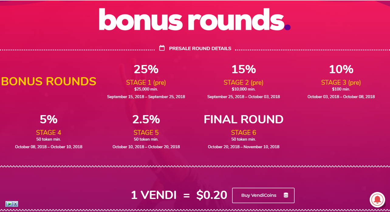 Vendicoin token VENDI – is the core of all transactions made in the Video Interactive Platform (VIP). No payment or transaction can be conducted without VENDI, which is regulated by smart-contracts. The primary issue of VENDI tokens will be after the Token Sale.
