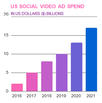 In just one second – more video will move across the internet than you could watch in almost two years of doing nothing else, including sleeping. Online video is changing how businesses and brands communicate with customers and how we communicate with one another. Statistics show that as video consumption continues to increase year-over-year consumers are finding more ways to consume video. The relationship between video, consumers, and advertising is a symbiotic one that grows and thrives together. 45% of people watch more than an hour of Facebook or YouTube videos a week that translates to 100 million hours of video being watched every day on Facebook alone. With this extreme rate of consumption, 46% of marketers plan to add Facebook video to their content strategy in the next year. Video advertising via social media is expected to grow to US $17 billion by 2021.