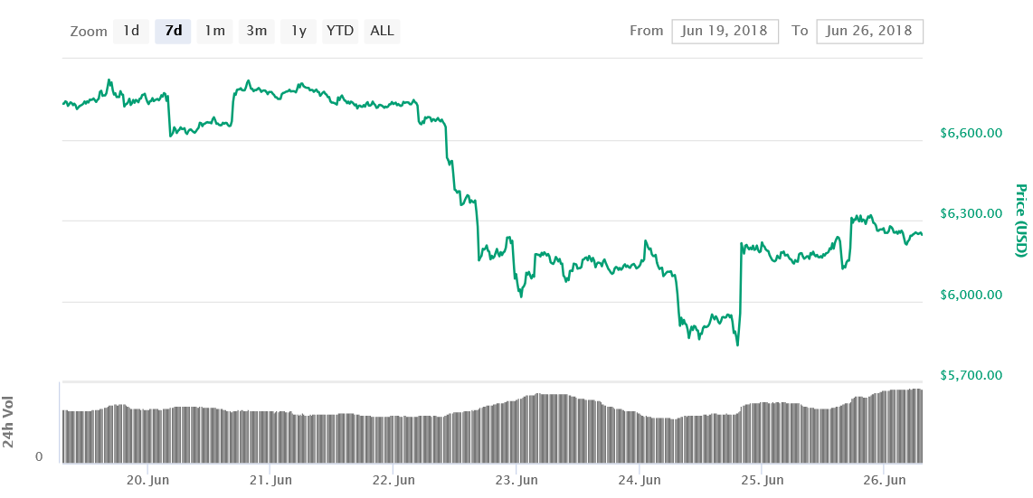 As of press time, bitcoin exchanged about unaltered for the day, well over the USD 6,000 mark.
