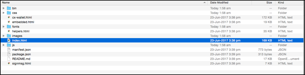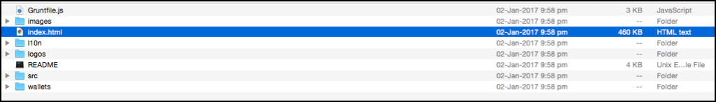 After that, be sure to disconnect from the Internet, and then open the file index. Html. All this is necessary to protect the purse from a possible hacker attack.