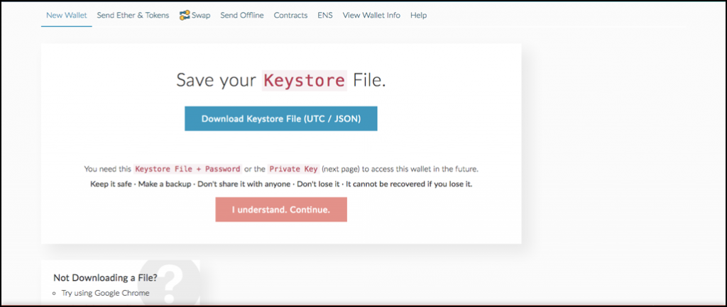 Download the file with the keys - this, in fact, is your wallet. Be sure to back up this file.