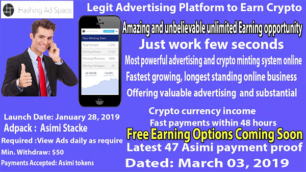 Hashing ad space payment proof March 03, 2019|Amazing unlimited earning opportunity |Crypto income