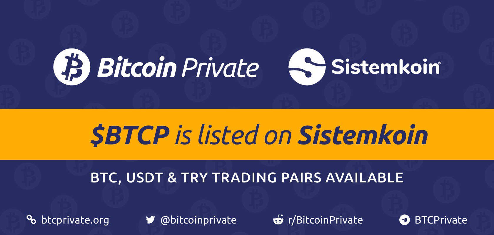 Recently, BTCP were listed yesterday on Hitbtc, and a couple days before that on Sistemkoin - this is great news for the community and I think will create more interest and the availability to purchase and trade BTCP.