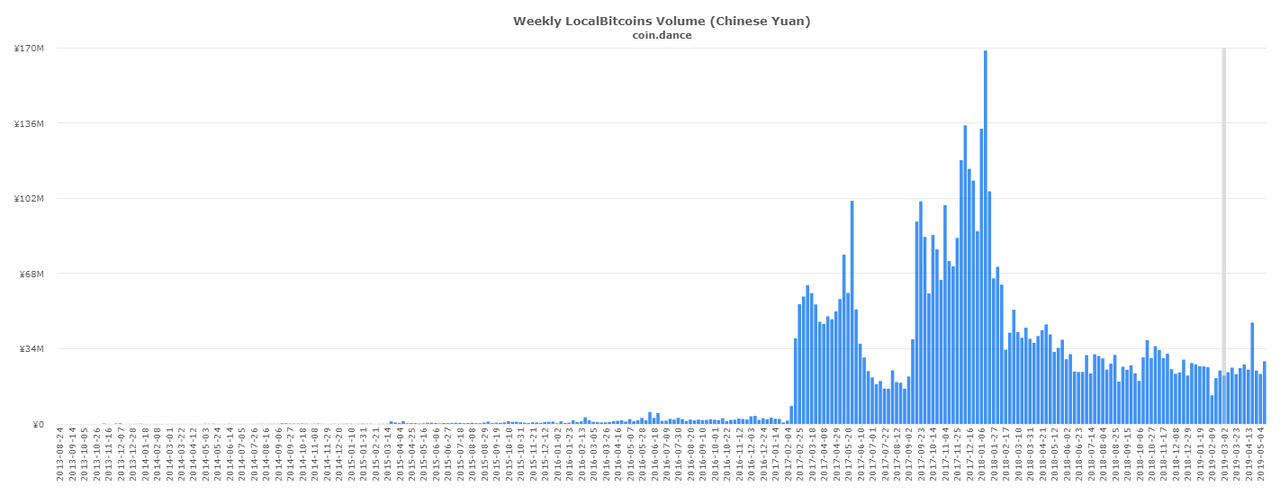 In March, China was the 5th largest in terms of volume by country on the peer to peer exchange.