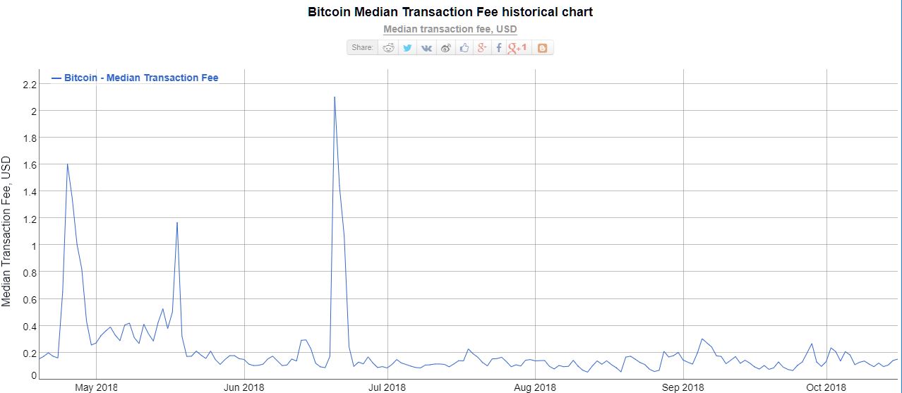 As you can see, bitcoin transaction fees have been hovering around $.10-$.20 for some time now. Basically ever since many of the largest exchanges started all supporting segwit.