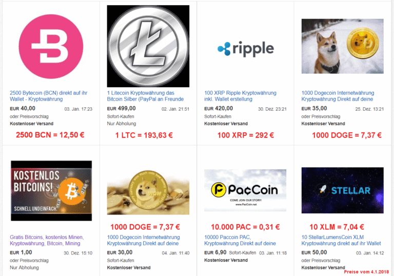 The Ebay online platform appears to be offering unlicensed cryptocurrencies, including unambiguous scams and coins, the offer prices of which are out of all proportion to the current market price. Those responsible seem to be aware of this issue and have taken steps to see how effective they are, but they still need to be proven.