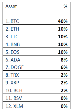 As we can see, it is still heavily weighted towards Bitcoin, but has enough exposure to benefit from success across the other coins.
