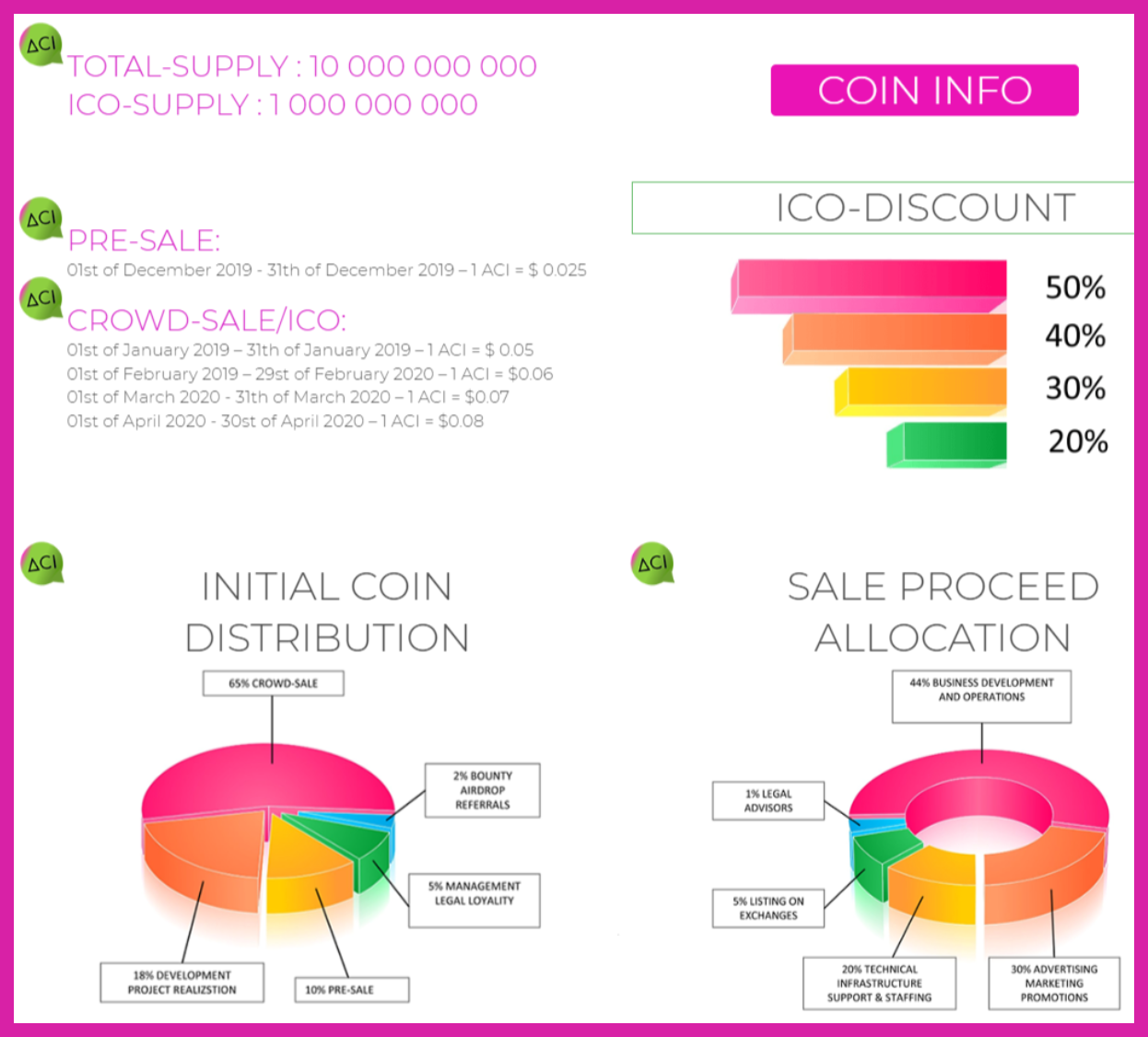 Arc Iris Hydrogen is the place where you can do whatever you want with the Arc Iris Hydrogen blockchain. This will allow you to mine, will have a decentralized coin exchange (DEX) and the base currency Arc Iris Hydrogen (ACI). ACI Coin uses the Scrypt POW algorithm, which makes it as secure as possible. ACI Coin — this coin is mined, toggable, used and profitable! All contracts and bonuses in various projects are paid by ACI coins. This coin makes an active contribution to environmental protection; You can use ACI in several projects, as a coin of loyalty; fast and secure transactions around the world; secure multi-currency HD wallet; profitable mining through the use of ACI coins.