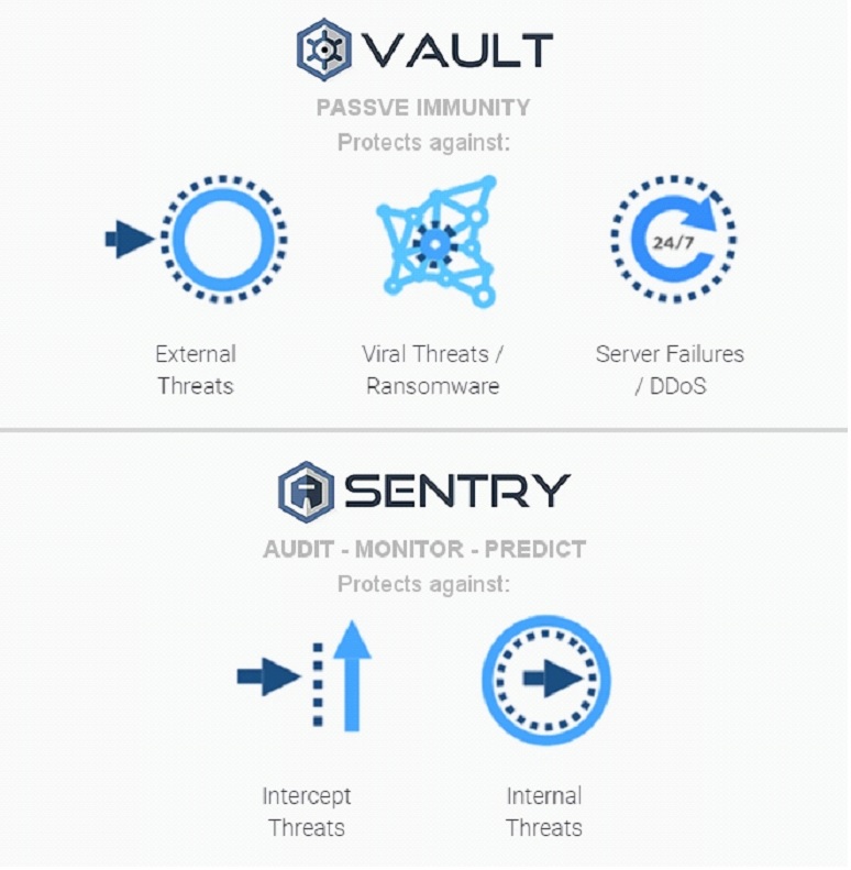 Vault is a decentralized cloud storage platform that spread the file shards across five major cloud storage providers that’s Google IBM Bo X Amazon Dropbox and it is too far for the hacker to break into this vault. They would have to simultaneously break in the three of five providers discover the uniquely coded hash that links all the shards together and decrypt to six level of the sha 256 bit millard military-grade encryption and break into the user’s device. That’s how the encrypted the vault is and then each file is separately ring-fence from the other files so we can’t have a large-scale hack happen on cryptic. Hackers can’t l hack one file in it. It will be pretty much impossible because the hacker has to steal the device or simulate the device. They have no access and visibility into the files that are stored into the vault and if thority requested to view the vault and what people are storing on their cryptic actually doesn’t have access to view any of the information there because it’s obviously Block chain.It is decentralized. On the other hand “Sentry ” is going to be an immutable block chain that audits and monitors and track all of the events within the platform and also is the backbone for cryptic cyber security in the ecosystem. It is an open source development.