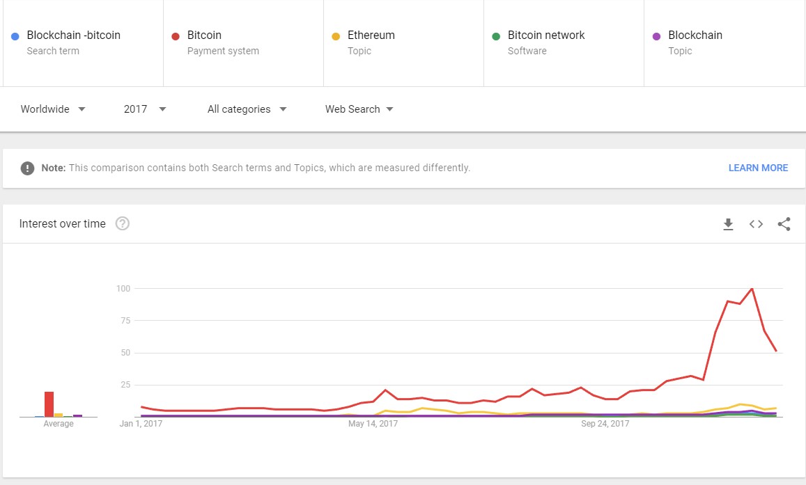 Many know Google Trends. It is a Google tool that allows analyzing research trends, what is asked to the most famous and used search engine in the world (certainly in the western countries). It occurred to me to use this tool to go and check what the searches were carried out, in 2017, related to the word "blockchain".