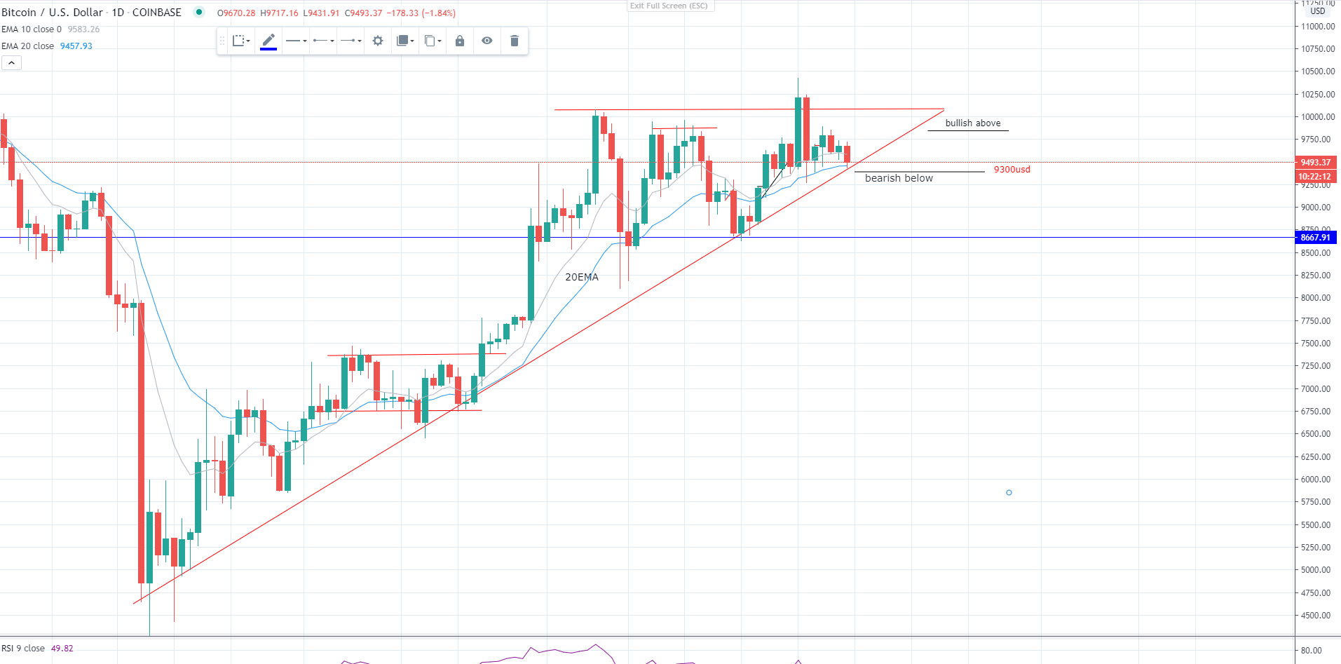 Breakdown from this support line then We may soon see BTC at 9200usd - 9300 usd