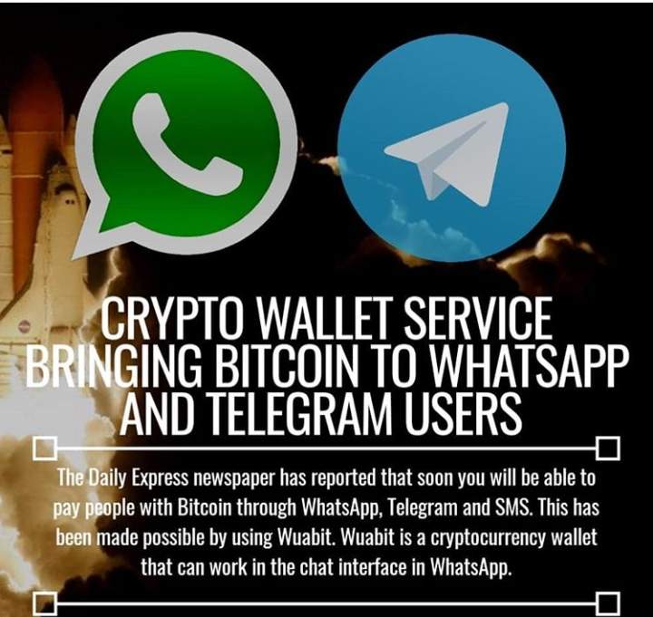 Bitcoin, XRP Payments Soon Available on Telegram & WhatsApp. Wuabit is about to release its crypto wallet that can be integrated into chat interfaces of popular messaging apps.The platform developers promise a user-friendly wallet, Apparently, in order to conduct a BTC or XRP transactiong it is enough to type a direct command, like "send 0,03 BTC to James", The wallet will process the command and will transfer the crypto immediately. In April the public will see the beta testing of the app.
