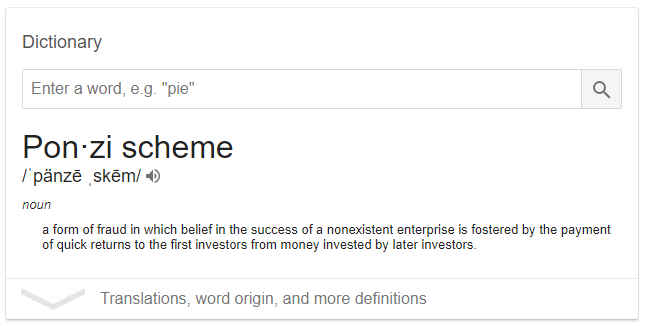 Nonetheless, in the impossible quest to explore the entire crypto landscape, I've stumbled upon CoinDump and I'm fascinated to explore their model and to better understand the nuances which may help us distinguish between great investment opportunities and possible scams. The concern I most often see expressed in comments threads is that projects which require initial investment and promise high returns must all be Ponzi schemes. So, I revisited the definition of a Ponzi scheme: