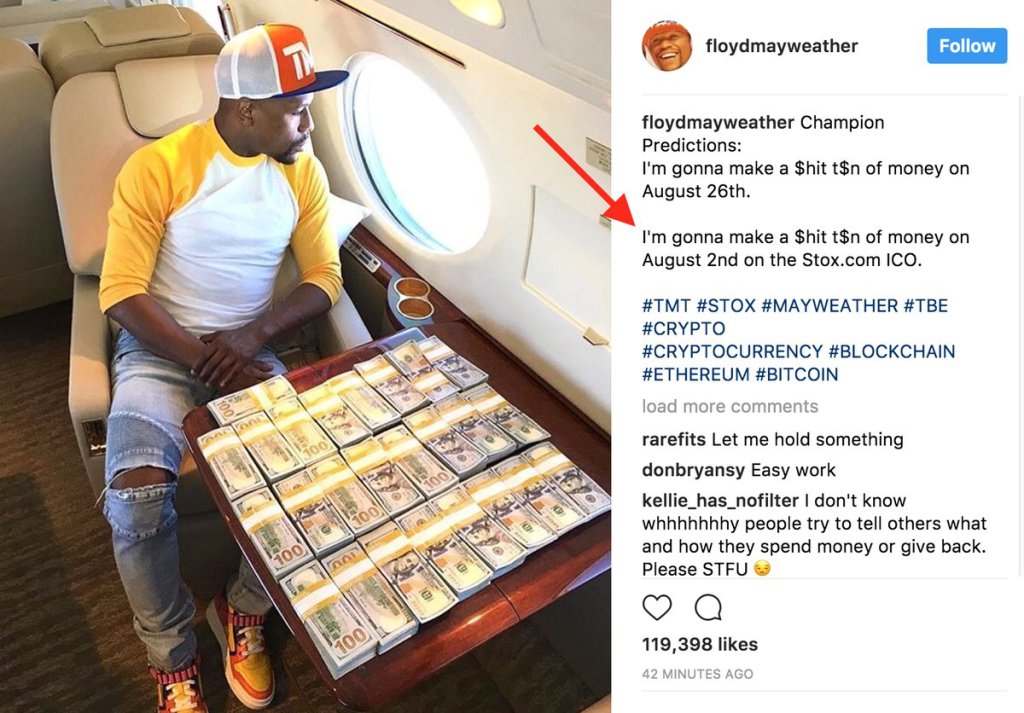 El famoso boxeador Floyd Mayweather, publicó en sus redes sociales una imagen, en ella está acompañado de una gran cantidad de dólares, al mismo tiempo, predice que ganará mucho dinero con la ICO de Stox.