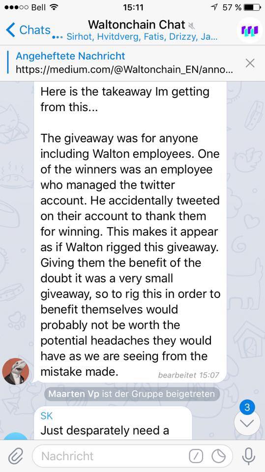 Moments later, Waltonchain replied on Telegram