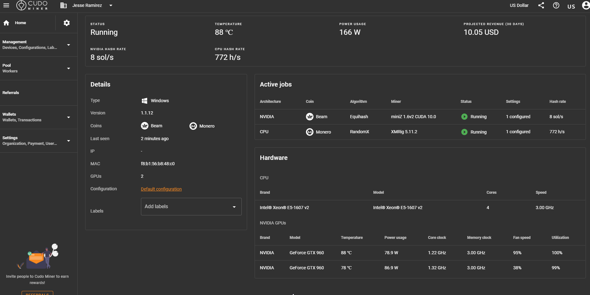 What first started out as a hobby quickly become a passion to try and figure out what Bitcoin Mining was and how could i make it profitable for me. It's not going to make me rich but i'm running 3 rigs and 2 cell phones for cloud mining. I know it's not much right now, i'm barely going to be clearing $16 a month. When you think about it in the long run it's money in the pocket. I've been testing differenet applications and different sites only to find a lot of sites that don't do what they state that they do. So I started with some complicated applications and then went through my share of mistakes followed by my own mistakes and blunders included loosing $68 in mining profits to a scam. The good thing is that I learned from my mistakes. Now I've tried to alter the settings within cudo miner to gain some better profit but I can't seem to get the proper settings to work for me. For instance I change the power that will be utilized and yet my system turns off instead of increasing the hashrate until today. I found the issue that I was running into which was because of mismatched memory and the drivers for the Nvidia cards... I say cardds because I have 2 in this rig, Nvidia GTX 960's and they weren't being properly installed. Once I installed the right drivers and then removed GeForce Experience the rig started producing about 5x better then first tested. Of course i want to test and play with the settings more so that I can maximize the profitability from this rig but so far I'm happy with the outcome. So if there is anyone out there that wants to start mining but don't know what to do, if you play games on the PC or Laptop then you can Mine. Create your Blockchain wallet and then create your cudominer account and if you don't mind use my referral code so i can get some credits off the project. If not then ether way I'm glad to help anyone out who needs it. Thanks for reading my posts and I hope you enjoyed it and possibly learned from my mistakes. Bye for now.
