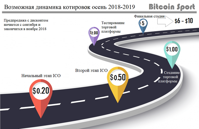 - В то время , как BITCOIN, RIPPLE, LITECOIN и другие криптовалюты теряют позиции в цене, в среднем на 50-75% , токен BSport вырос более чем на 1200% от начальной цены( начальная цена была 1 цент ( 0.01$), а сейчас стабильно держится на уровне 17 центов( 0.17$) беря всё новый и новые высоты )