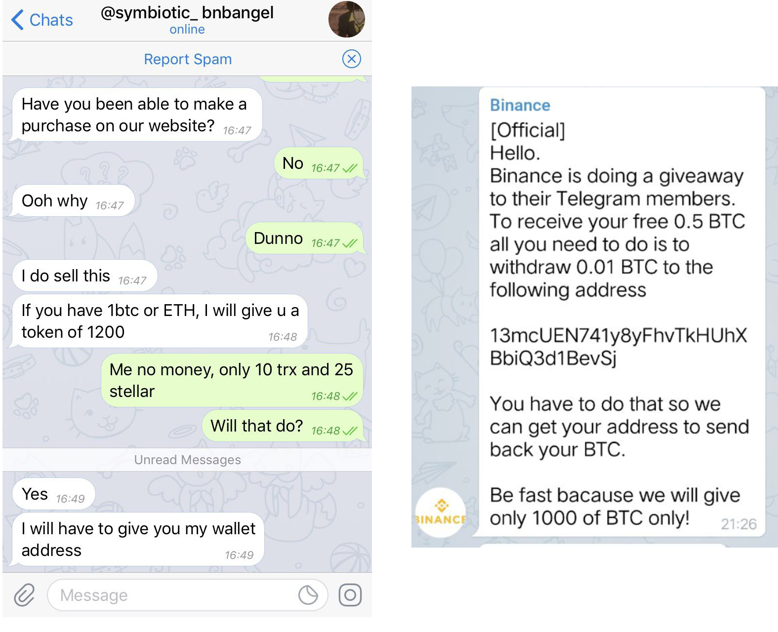 Telegram Scammers:- Telegram is a social media platform which is the 'go to' tool for avid cryptocurrency investors. Telegram has been criticized recently for it's inability to counter identity theft. Almost all Telegram users have been approached at one stage or another by users purporting to be someone either well known (such as a YouTuber)or a trusted admin of a cryptocurrency group. Offering help and advice with issues and promising improved deals, their ultimate aim is to get you to part with your cryptocurrency and send it to them. It is rumored that many of the scammers form gangs who receive a percentage of their ill-gotten gains.