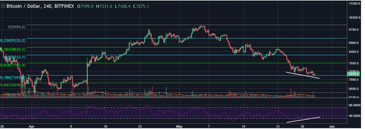 Expecting consolidation at this zone for a couple of days. If we don't break $7,600 I think we see a panic sell off towards $3,000 as potential 2018 bottom, any thoughts?