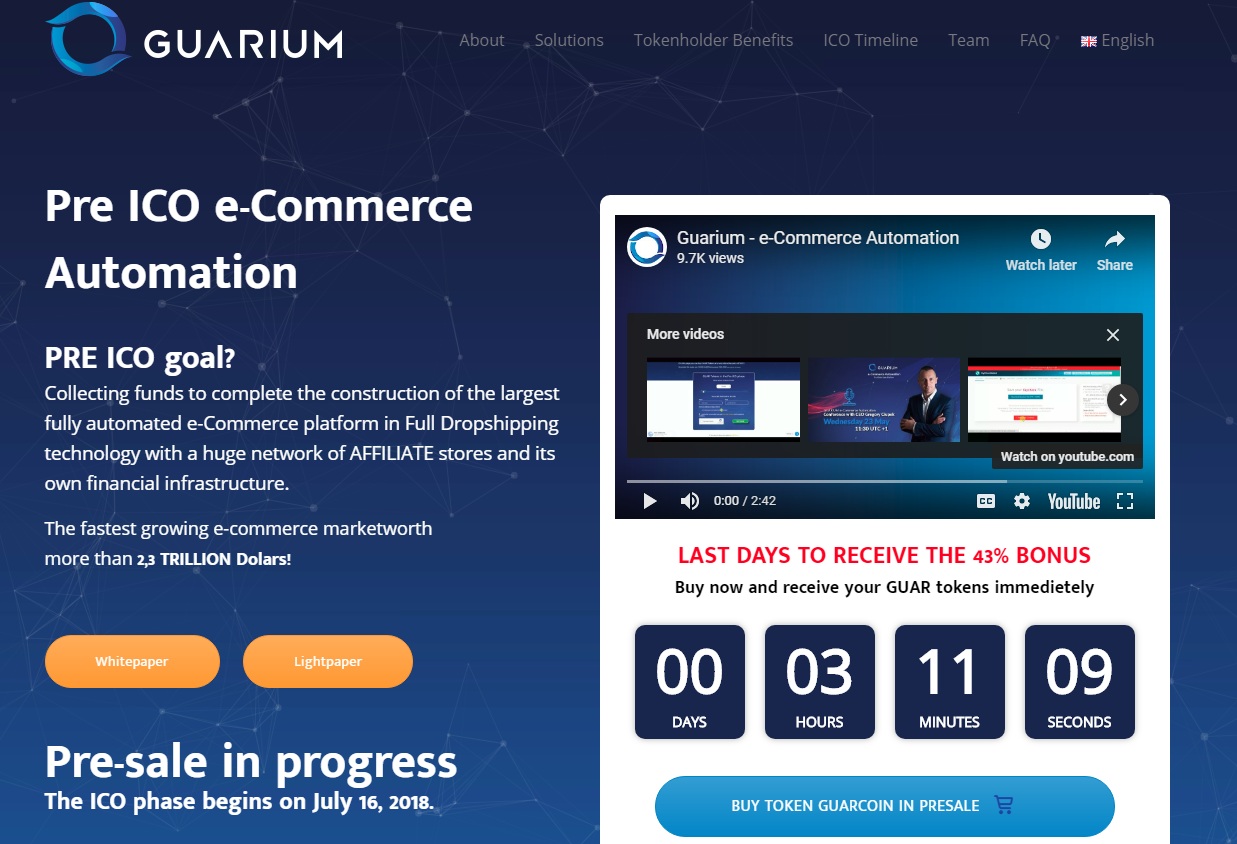 Guarium ist das e-Commerce-Automatisierungssystem, das innerhalb Blockchain Plattform verwendet wird, um diese Anforderung zu erfüllen, die noch nicht richtig abgedeckt ist. Es wird grenzenlose Möglichkeiten eröffnen, unser eigenes Online-Geschäft für Millionen von Menschen auf der ganzen Welt zu haben. Sowohl Produzenten als auch Großhändler, die sich engagieren, werden sofort riesige Märkte für Ihre Produkte haben. Letztlich kann es die weltweit größte Business-Markt in der Welt auf Blockchain Plattform zu schaffen.