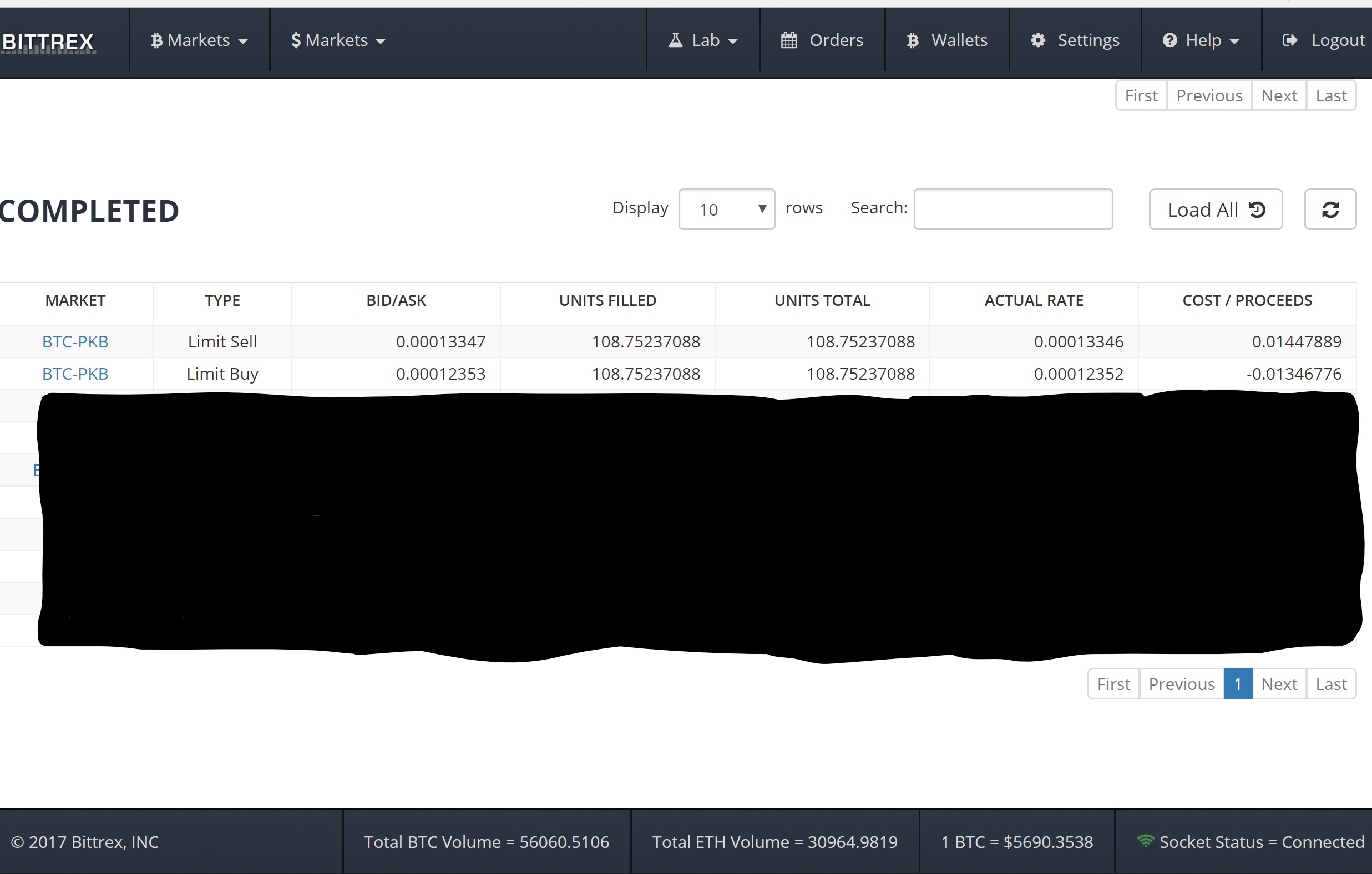 This morning I bought 108.75 ParkBytes (PKB) at .000123 BTC or $0.71. I chose this coin because it had a lot of volume and a pretty significant price fluctuation. Of course, as soon as I bought it, it began to decline and stayed in the mid to high $.60 range. I was finally able to squeeze out a profit at $0.76 or .000133 BTC.
