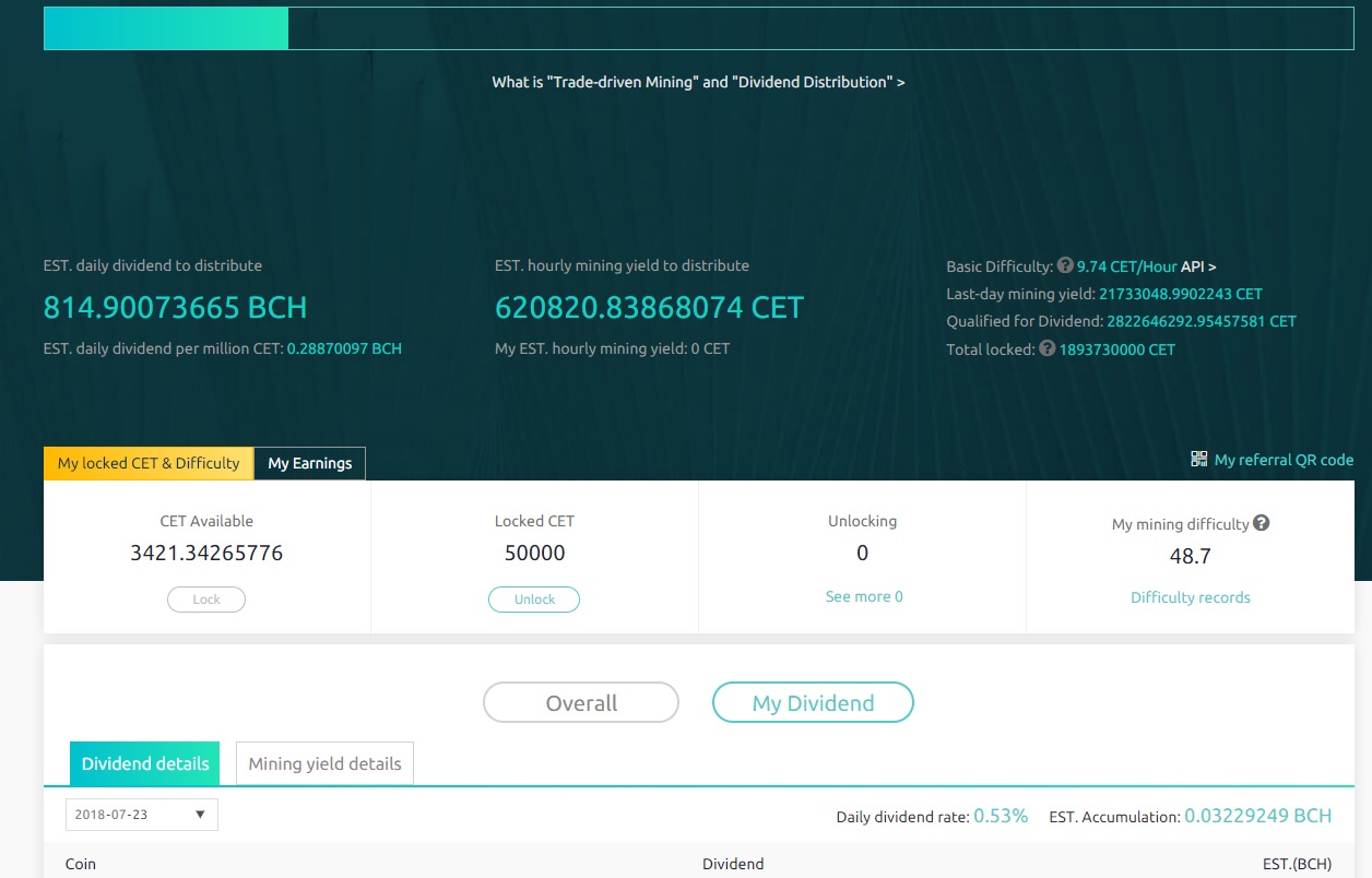 제가 5만개정도 락업 중인데 하루 약 0.03 BCH가 들어오는 것 같습니다.