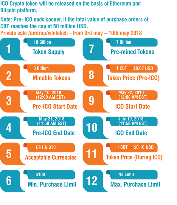 Cybit supports three types of fundraising campaigns; Initial Coin Offering, Crowd Investing, and Crowd Funding. CyBit offers a unique vehicle for Investors to finance the project through CBT as the underlying value token!