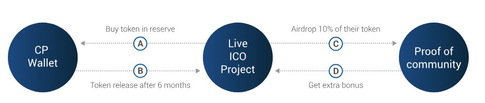 The ICO project will ought to portion a thousandth of their ICO token to CryptoProfile, that thereafter portion a thousandth of that token pool and delivery to CP token holders thus on any stimulate interest and participation from the cryptocurrency community
