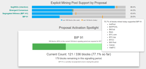 오전만 해도 BIP91 물건너갔다고 생각했는데 지금보니 어찌될지 모르겠네요!