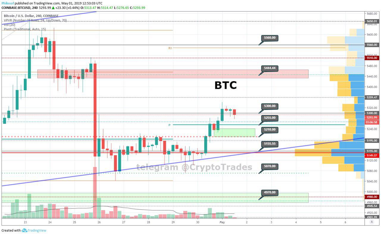 ‼️ Carefull, BTC correction ‼️orphism (47)in #bitcoin • 7 years ago 📈 Bitcoin 4H chart update 📉 Pivot at 5250. Support 5240-5210. These are targets for correction. While within these levels BTC and alts stay bullish. #btc #crypto #steemit #binance