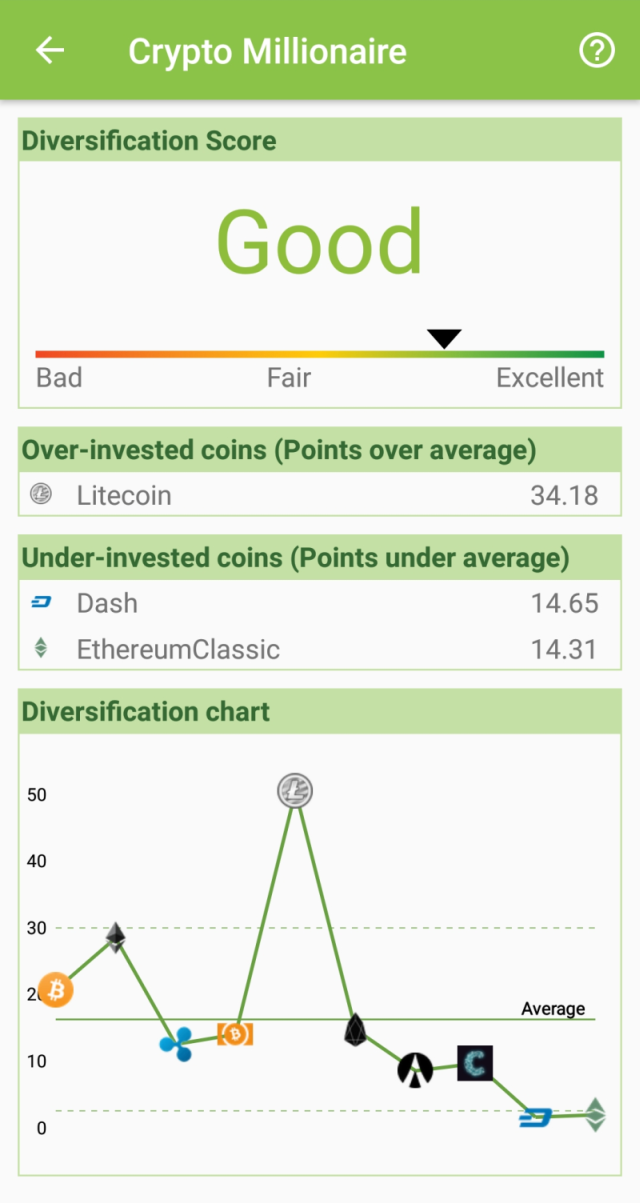 It will help you create a diversified crypto portfolio, it's free (ad supported) and will compute your portfolio value just like Blockfolio. However, it's much better than Blockfolio because it doesn't send your portfolio information online (huge privacy issue) and it let's you know how many coins you need to buy to own the millionth of supply on each of the top blockchains. Also, it allows you to backup your portfolio information on your phone or MicrosSd card.