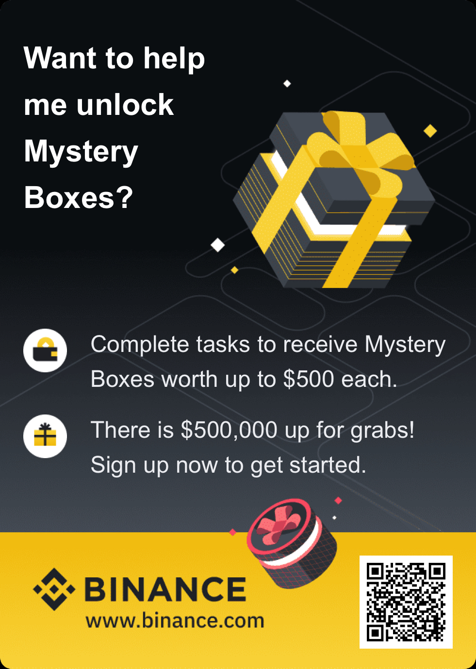 Unlock mystery boxes. Each is worth up to $500. No nonsense. No hidden conditions. Only free cryptocurrency.