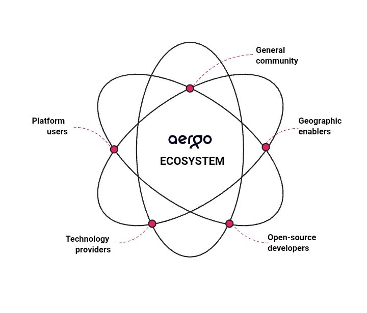 Nous avons l'intention d'accéder à AERGO Marketplace via l'interface publique AERGO Hub.Nous envisageons l’écosystème AERGO d’avoir cinq groupes de parties prenantes clés: