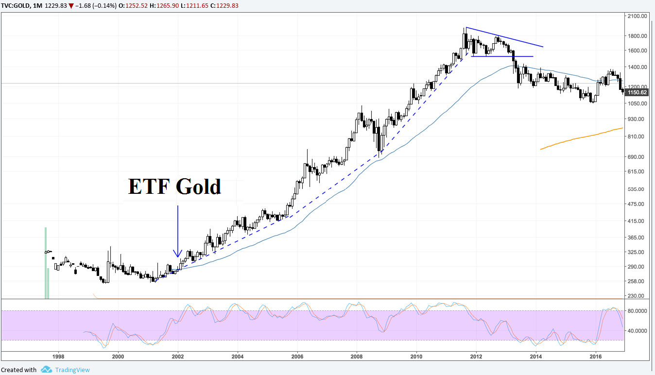 Looking at the chart, the gold price has risen to 300% since the first ETF was released.