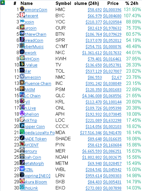 Top 30 rising in the last 24 Hours