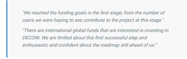 Shay Perry, the CEO of DECOIN, was impressed by the community’s support: