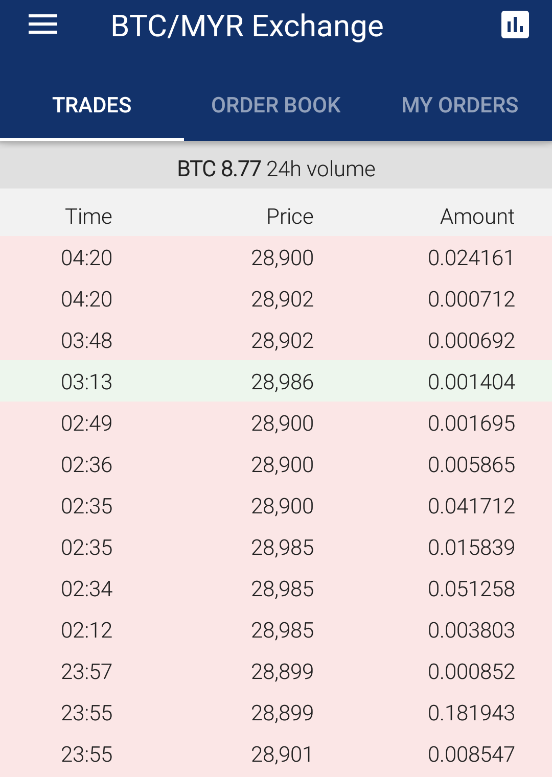 On the other hand we have 24 hour trades float as u see... taken and using luno app at Bitcoin 8.77 24h Volume.