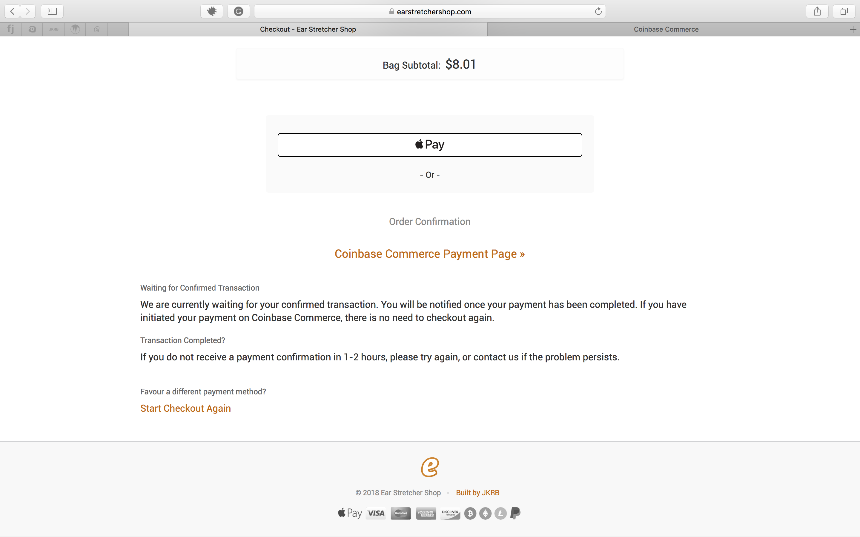 Even though we cannot do things like customising the checkout page at this time, you can bet that it is coming in a future update. This is truly early adopting, but familiarising yourself with a Cryptocurrency checkout experience early on will be beneficial as we endeavour to improve our checkout experiences.