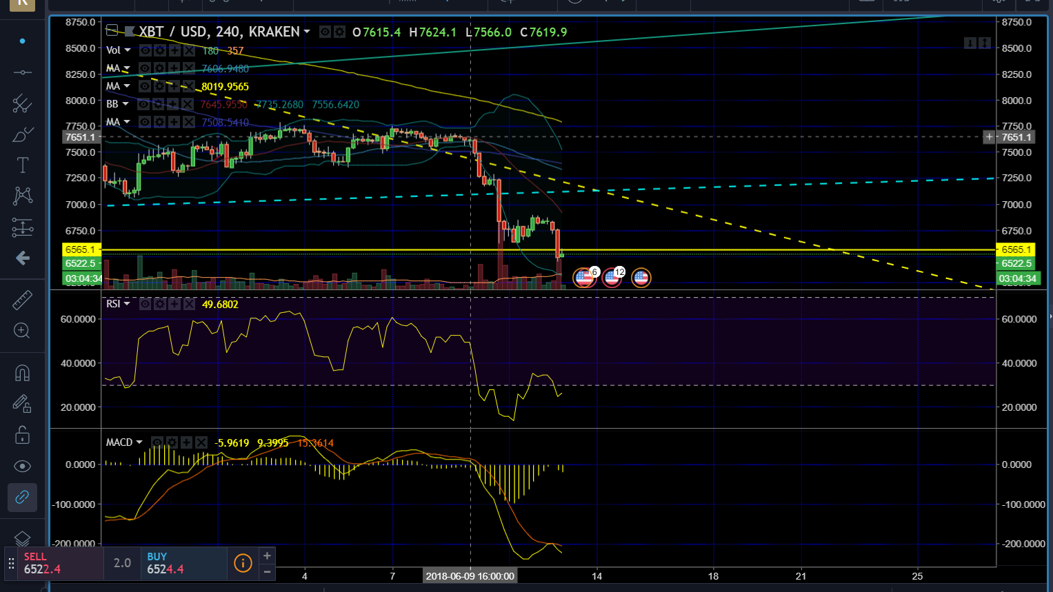 Bitcoin (6/12/2018): Descending Triangle, Further Drawdowns, and Consolidation