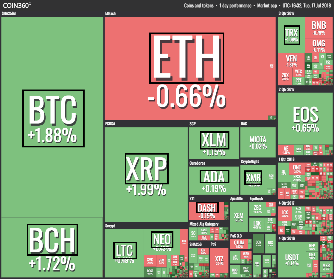 Bitcoin has now brought its weekly and monthly gains into net positive territory, which are at around 6 and 2 percent respectively. The coin has now outstripped its outstanding rally on July 8 when the coin hit almost $6,800.