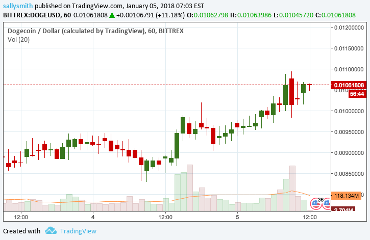 The little coin that could finally advances over the .01 resistance that's been dogging it for days!