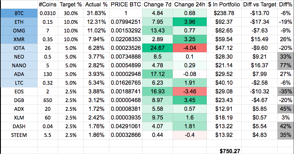 The HODLfolio's value is at around $750, you can check the current holdings here: