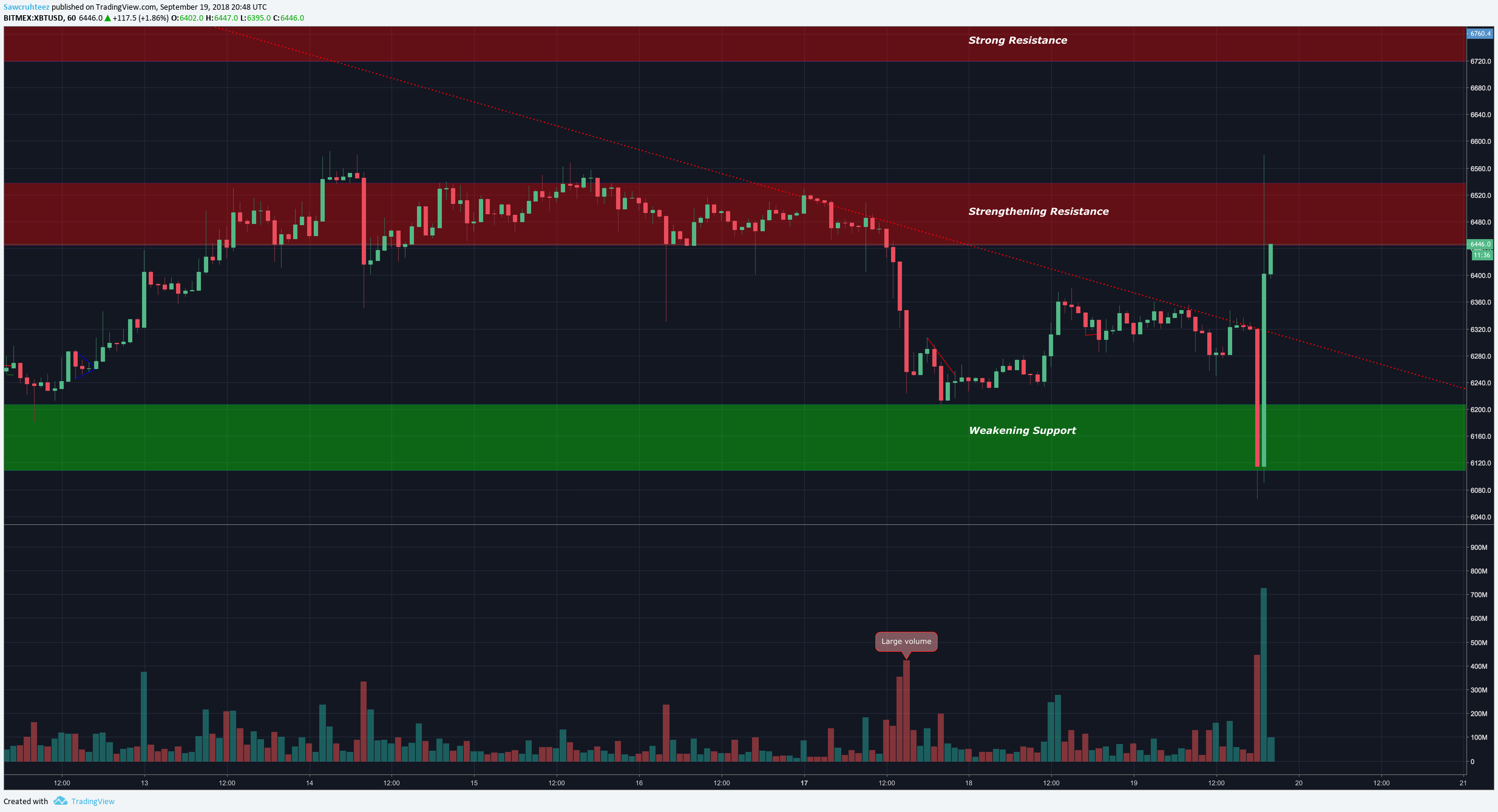 Summary: Buckle up your seat belts and get ready for some volatility! If you have forgotten how hard and fast these markets can move then this morning was a bit of a wake up call. Last week I said that I wanted to see a quick spike up to $6,700 in the form of a short squeeze to act as a shakeout before the breakdown.